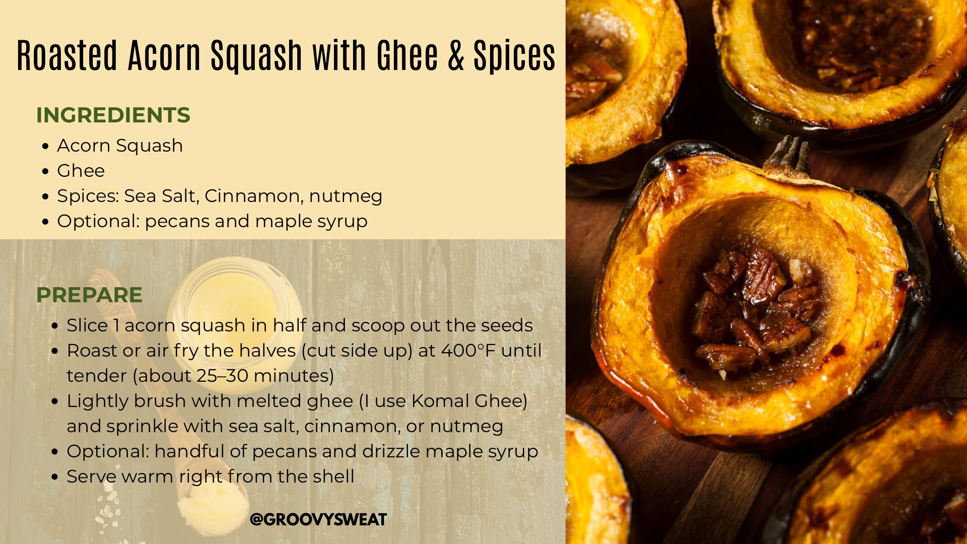- Savory Side: Roasted Acorn Squash with Ghee & Spices
